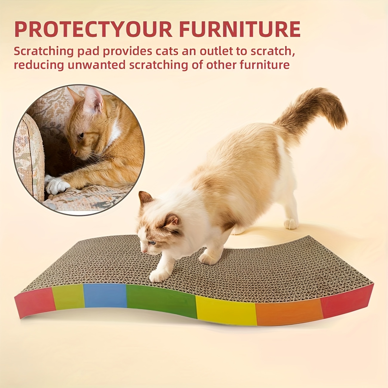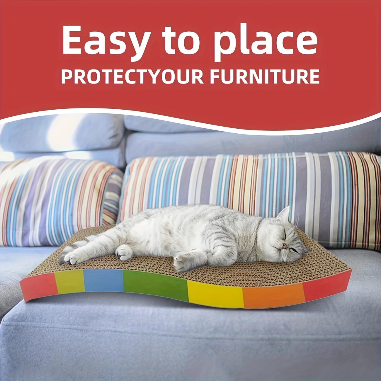 1 vnt Patvarus Gofruotas Kartonas Kačių Draskytuvas – Vaivorykštės Spalvos, Be Netvarkos Nagų Šlifavimo Žaislas Katėms, Tvirtas ir Linksmas Interaktyvi Žaidimų Paviršius, Kačių Žaislai