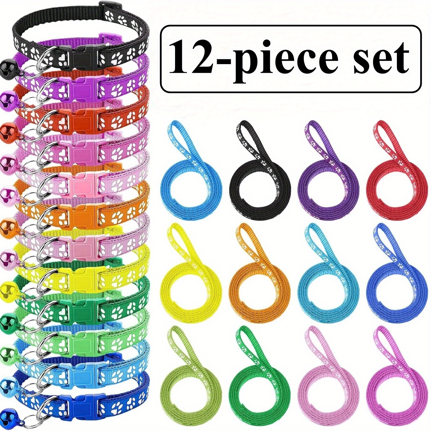 12 vnt. rinkinys su pavadėliu ir antkakle, karikatūrinių raštelių dizainas – tinka mažiems ir vidutinio dydžio katytoms bei šunims, Šuniuko antkaklio ir pavadėlių rinkinys,Šuns pavadėlis,Katės pavadėlis ir diržas,Katės pavadis,Mažų šunų pavadėlis, Šunų vedimo įranga,Naminio gyvūno aksesuarai,Linksmi raštai,Žaismingas dizainas,Aukštos kokybės augintinių aksesuarai,Lengvas diržas,Katės mylėtojai,Vidutinio dydžio augintinių savininkai