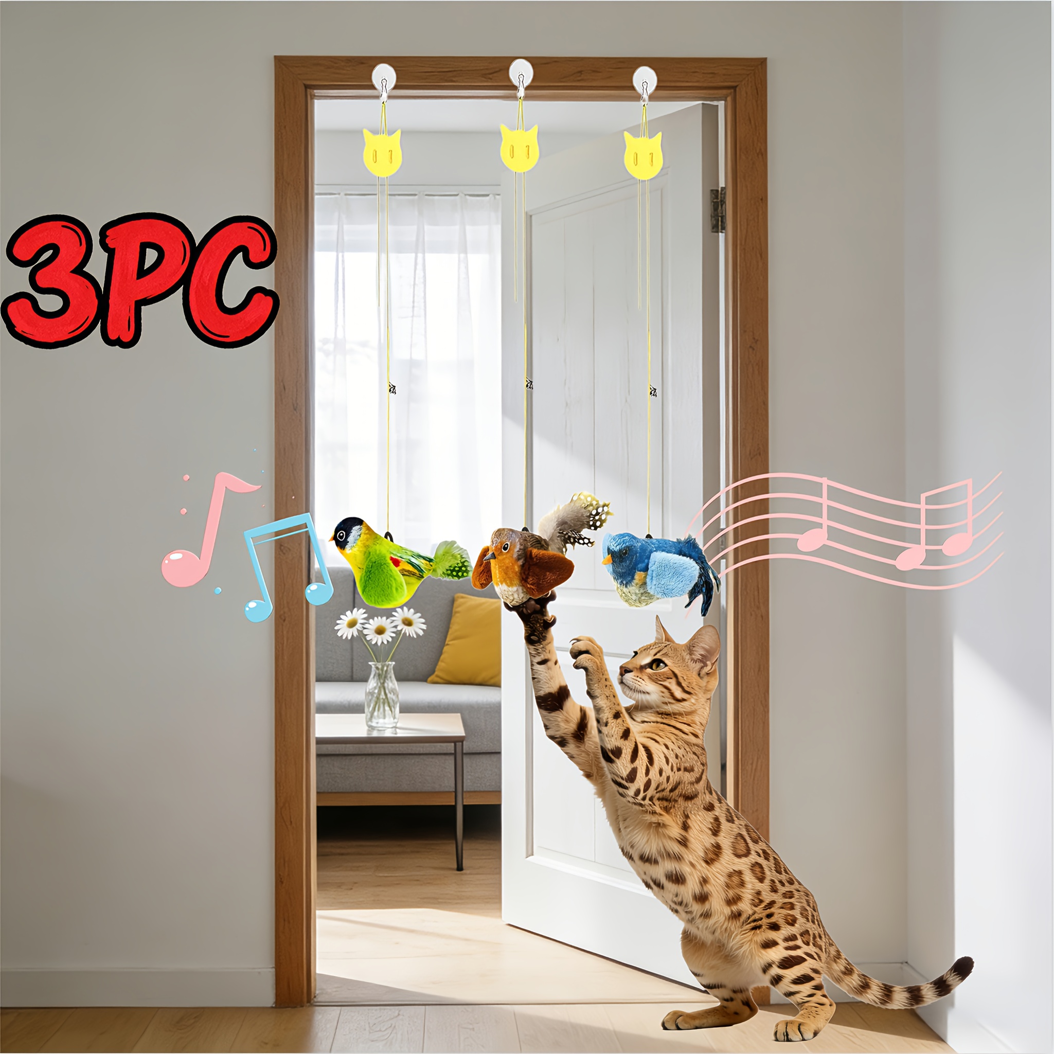 3 vnt. Katės Nuobodulio Mažinimo Žaislų Rinkinys su Dirbtinėmis Plunksnomis ir Įmontuotu Garsintuvu, Skatinantis Medžioklės Instinktus Namų Katėms Savarankiškai Pramogauti